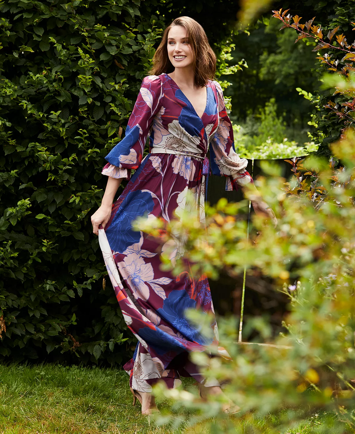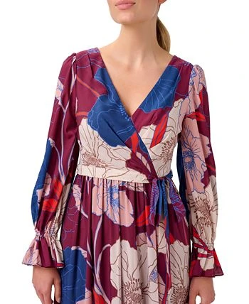 Adrianna Papell Women’s Printed Tie-Waist Long-Sleeve Dress