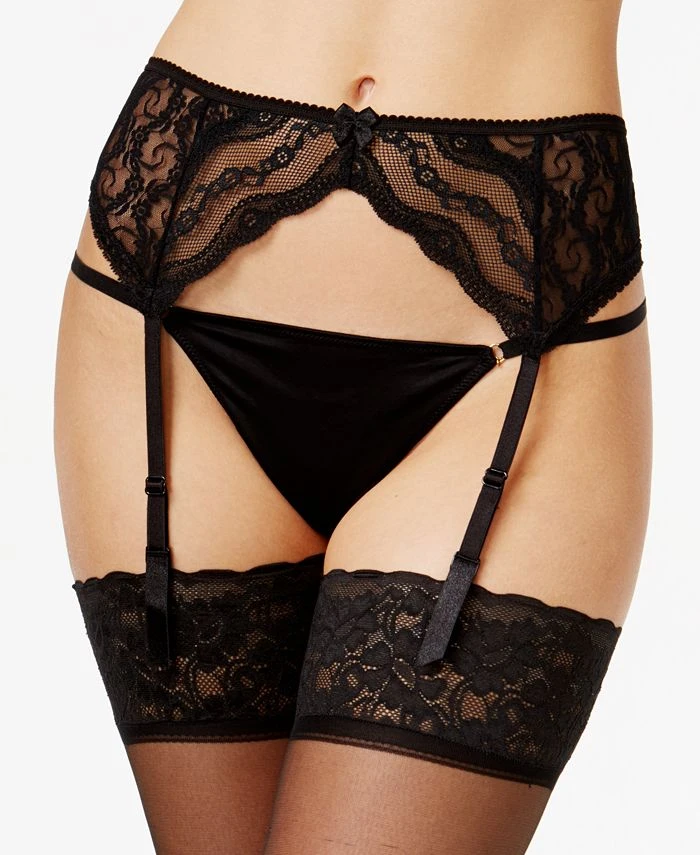 If you don’t have one, you know you want one. Featuring 360 degrees of allover stretch lace, adjustable metal hardware and ribbon flashes, this garter is guaranteed to turn any peck on the cheek into a passionate smooch session