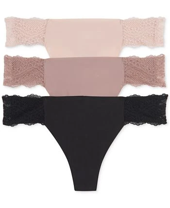 This chic three-pack of thong underwear from b.tempt’d brings a clean look under clothes with a lightweight, clean-cut fabric that’s finished with pretty lace detailing.