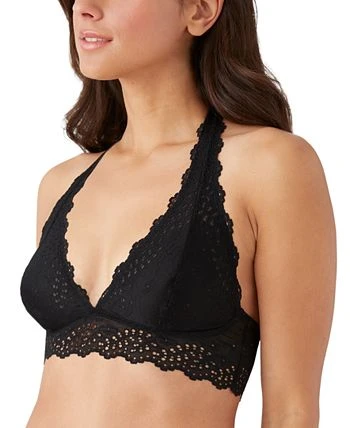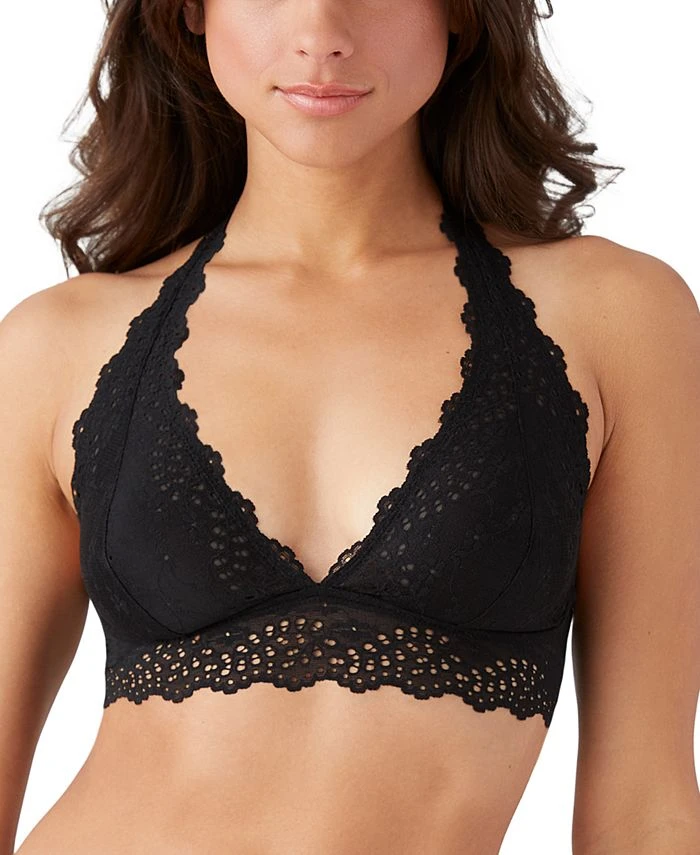 With a flattering elongated neckline, and pretty scalloped edges, this soft and stretchy eyelet-lace halter bralette from b.tempt’d is a style to be seen.