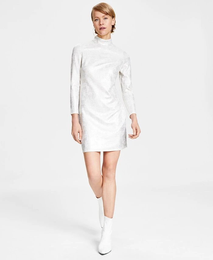Bar III Women’s Metallic Mock-Turtleneck Sheath Dress, Created For Macy’s
