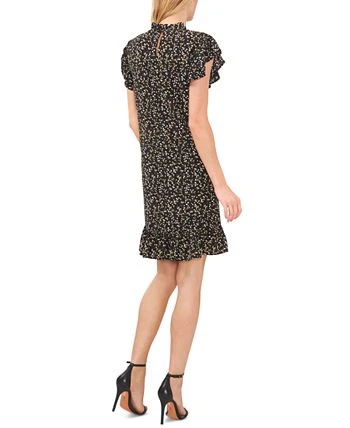 Ditsy floral flair is delicately ruffled at the neckline, flutter sleeves and hemline of this effortless dress from CeCe.