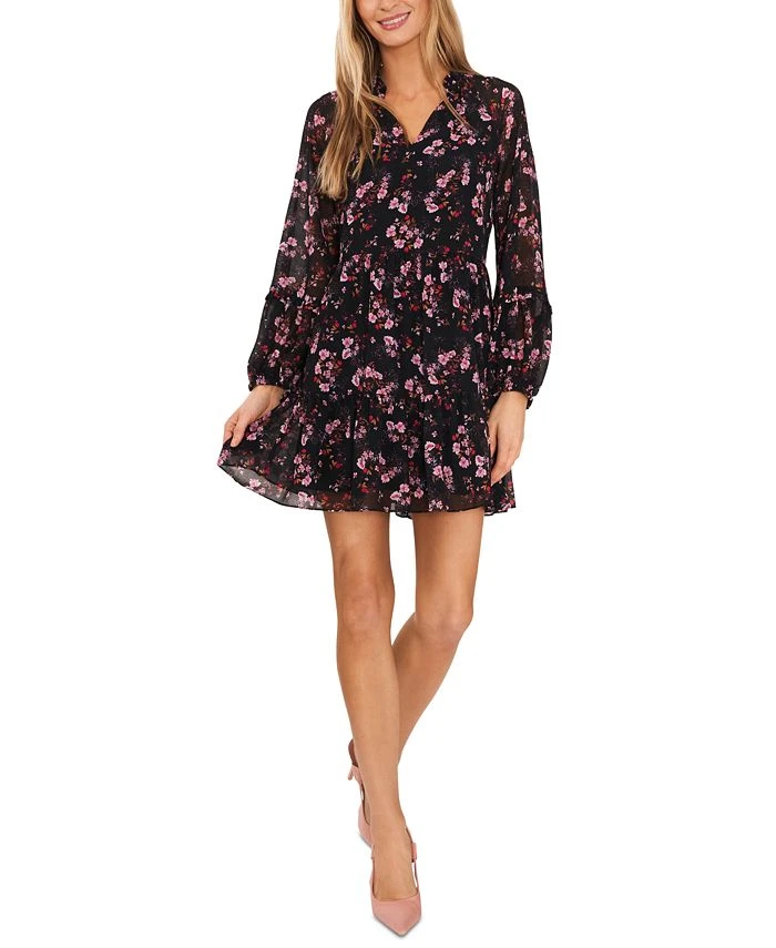 Charming ruffles adorn this floral print dress from CeCe, keep it causal with flats or pair with heels for a dressy finish.