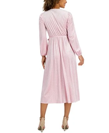 Kasper Glitter Velvet Faux-Wrap Midi Dress