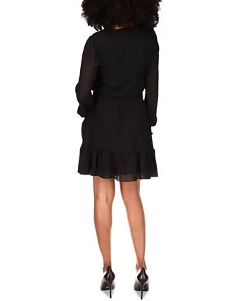 An asymmetrical ruffle finishes this Michael Michael Kors dress with a playful flourish. A smocked waist adds definition to the faux-wrap silhouette.