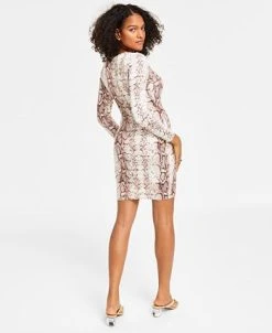 Bar III Women’s Snakeskin-Print Long-Sleeve Bodycon Dress, Created For Macy’s