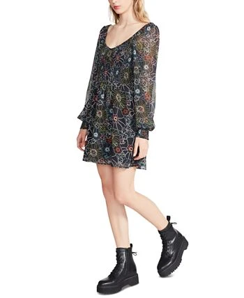 Designed for a form-flattering finish, this chiffon dress by Steve Madden features a smocked bodice that cascades into a flowing, light-weight skirt. Finished with florals for a colorful and oh-so chic look.