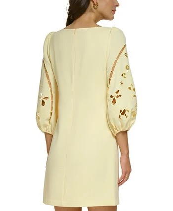 Embroidered cutout sleeves elegantly frame this solid shift dress from Vince Camuto.