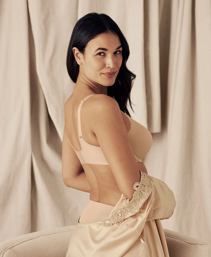 A decorative center front combines with seamless bands and sides that smooth and minimize bulge on Wacoal’s underwire bra.