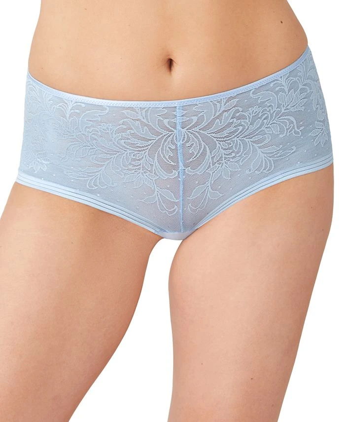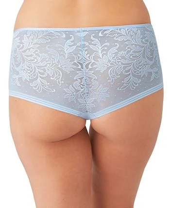 Designed with pretty jacquard lace on mesh, these boyshorts from Wacoal virtually disappear under clothing with flat edges at the leg openings and a comfy foldover elastic waistband. Style #845340